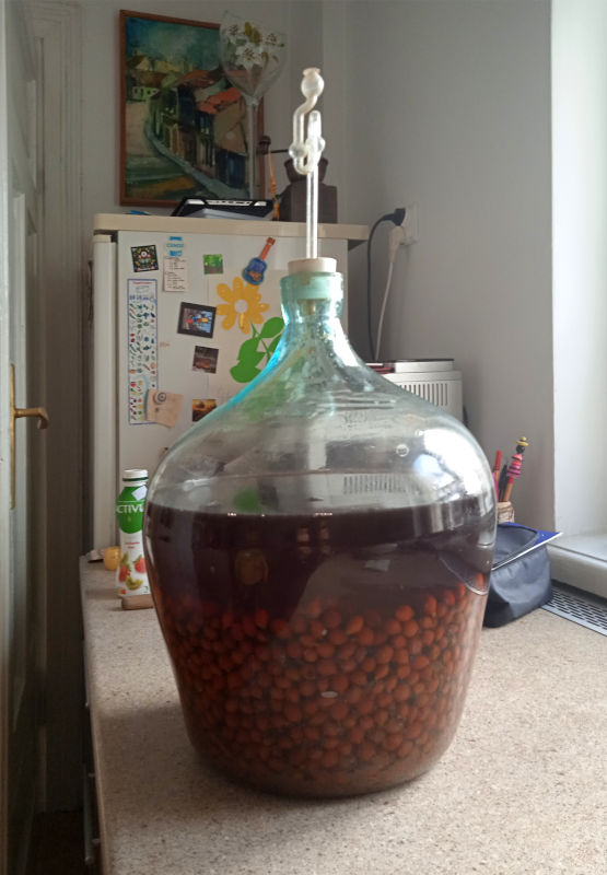 Należy pamiętać o ewentualnym uzupełnianiu płynu. - Stosuję kilkukrotne obciągi wina – po ok. 1,5, 5, 8 i 12 miesiącach. Ostatni do butelek. Najlepiej nie stosować butli bardzo dużych. Mam nauczkę – dwie butle 50-litrowe niestety mi pękły. Najlepsze są np. 15 litrowe z obciągiem do 10 litrowego. Może być także 20/15, 25/15, 30/20.