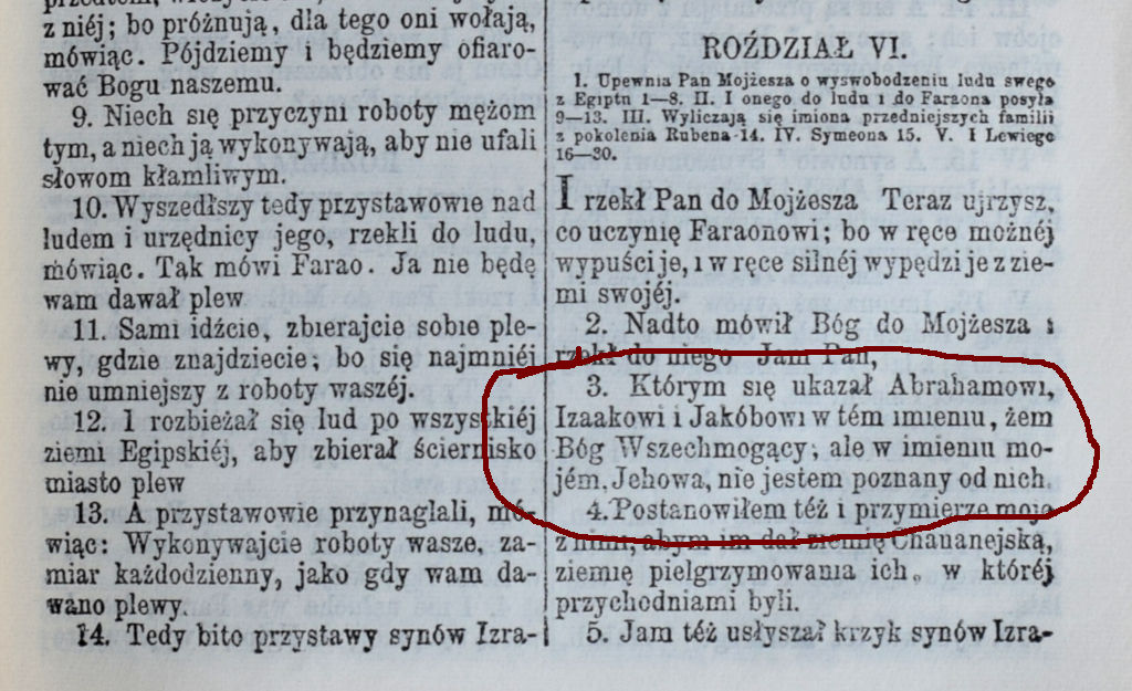 W starym wydaniu Biblii w języku polskim w II Mojżeszowej 6:3 czytamy: